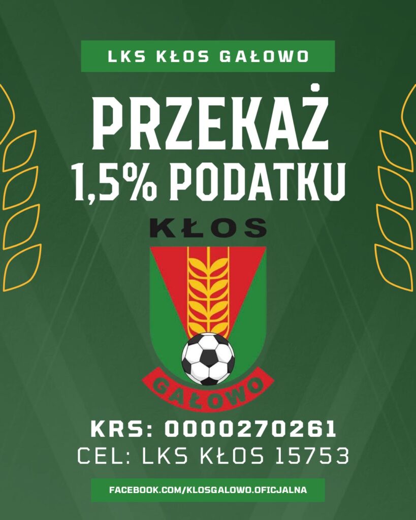 To nic Cię nie kosztuje, a dla nas oznacza wsparcie lokalnego sportu i rozwój młodych zawodników z Gałowa! 💚